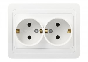 Розетка SMARTBUY скрытая установка, 2-местная с заземлением 16А белая \"Марс\"