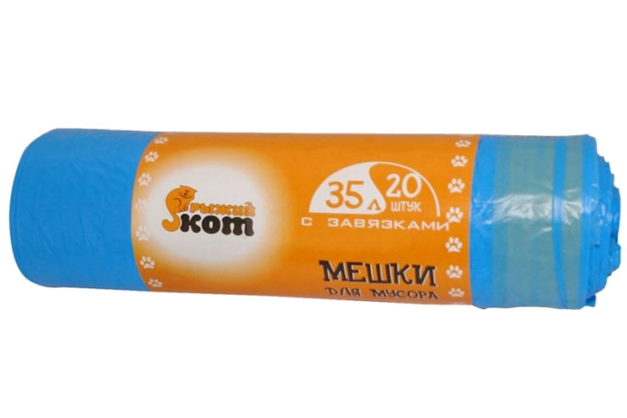 Мешки д/мусора \"РЫЖИЙ КОТ\" 35л (20шт./рул.) с завязками, ПНД, синие (1/30)