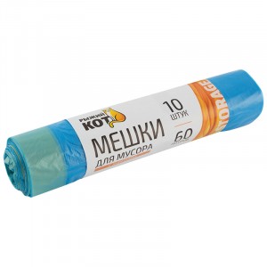 Мешки д/мусора \"РЫЖИЙ КОТ\" 60л (10шт./рул.) с завязками, ПНД, синие