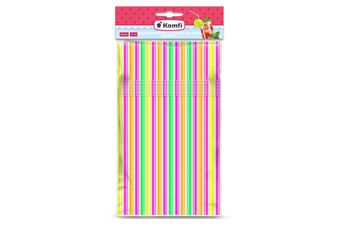 KGT013P Соломка (трубочки) для коктейлей, соков 5ммх21см 100 шт/уп. неоновые с гофрой Komfi/40