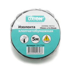 Изолента OXION хлопчатобумажная 15мм*0,35мм*5 м, 380В, OX-CT5M