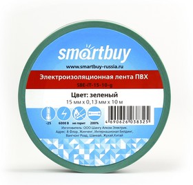 Изолента SMARTBUY 0,13х15мм, 10 метров, зеленая (SBE-IT-15-10-g) (10/500)