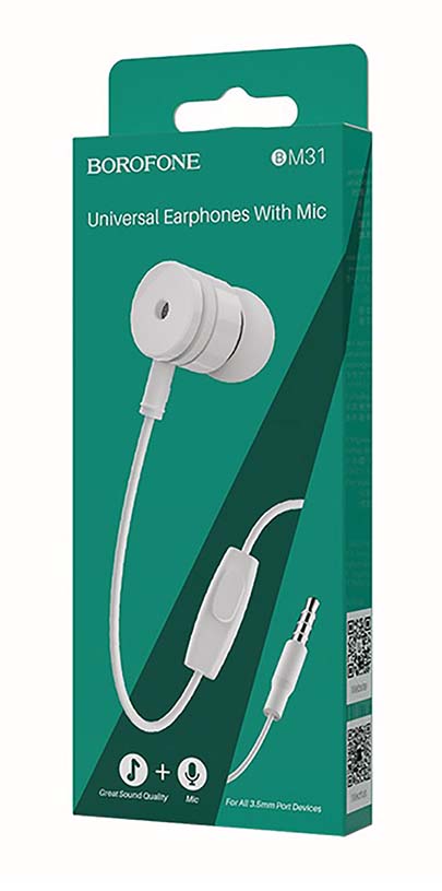 Наушники проводные BOROFONE BM31 вакуумные с микрофоном, 1,2 метра, белый