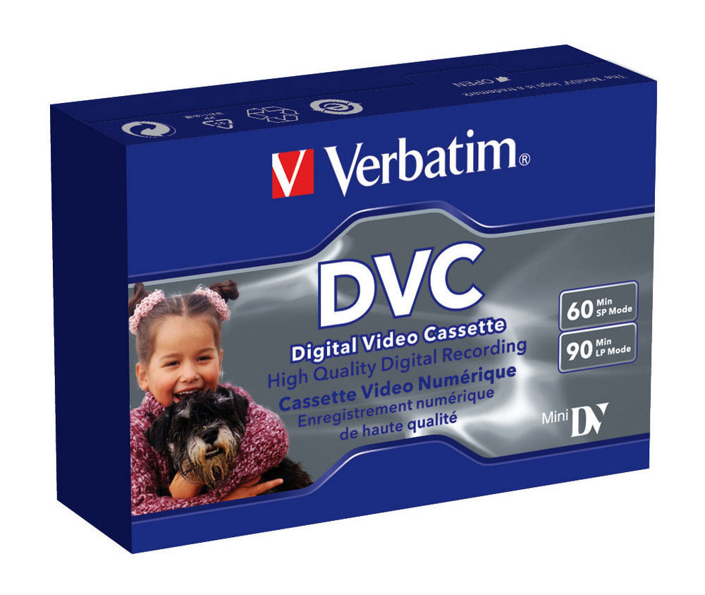 Цифровая видеокассета Verbatim для использования с камкордерами, поддерживающими формат Mini DV, позволяет записать до 60 минут видео высокого качества или 90 минут видео в качестве LP.\nСделано в Японии