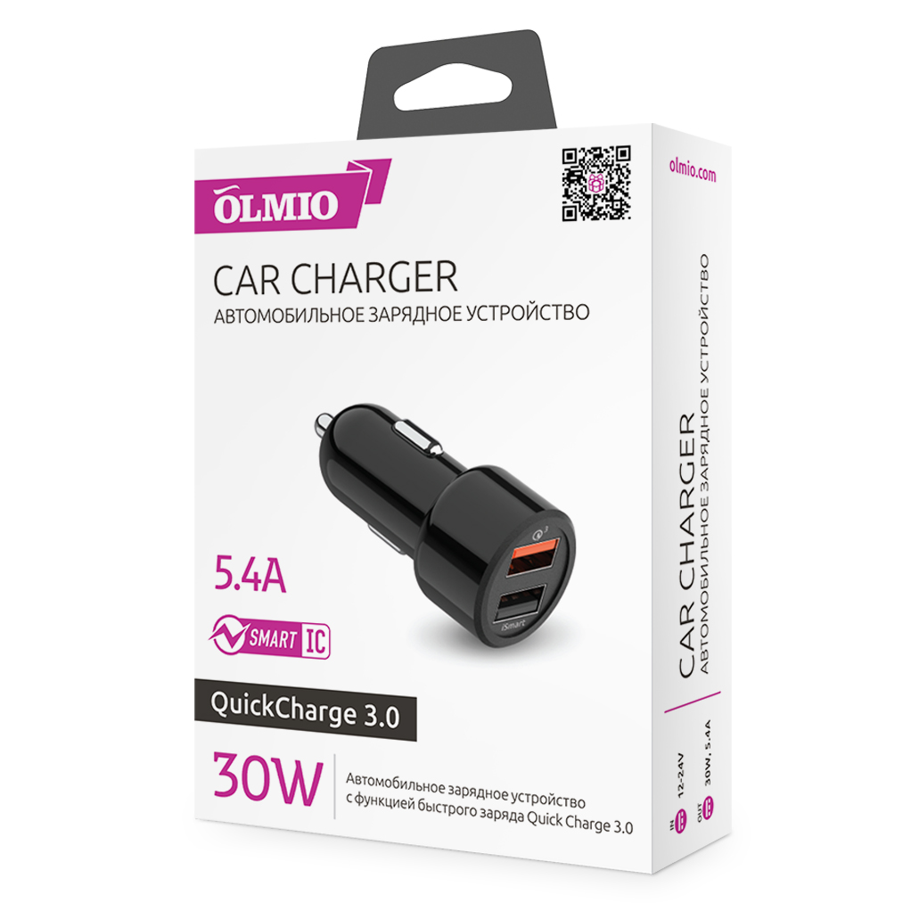 Автомобильное ЗУ 2USB, 30W, 5.4A, QuickCharge3.0, Smart IC, OLMIO