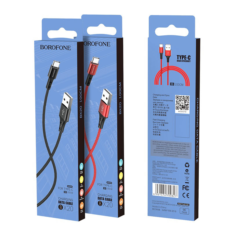 Кабель Borofone BX20 Type-C 1м (черный,красный)