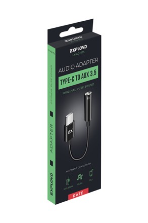 Переходник/Exployd/Jack 3,5mm - TYPE-C/чёрный/Rate/EX-AD-1175