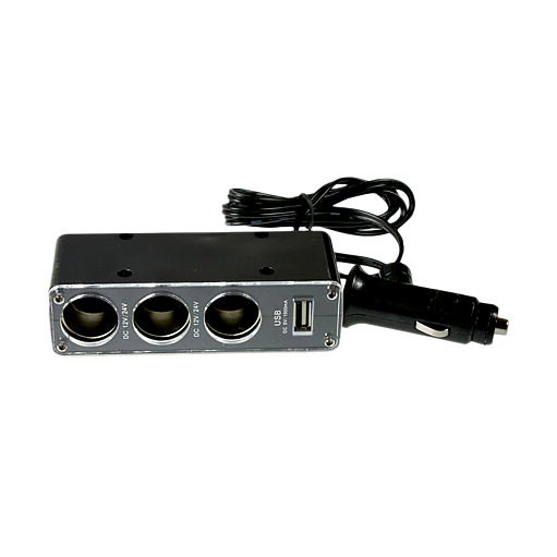 Разветвитель гнезда прикуривателя Olmio CC-004 (3гнезда+1USB 2A+провод-удл)