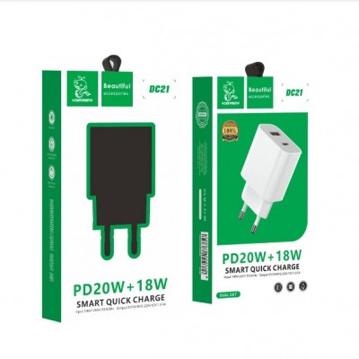 СЗУ Denmen DC21, 20W+18W, USB+USB-C, белый
