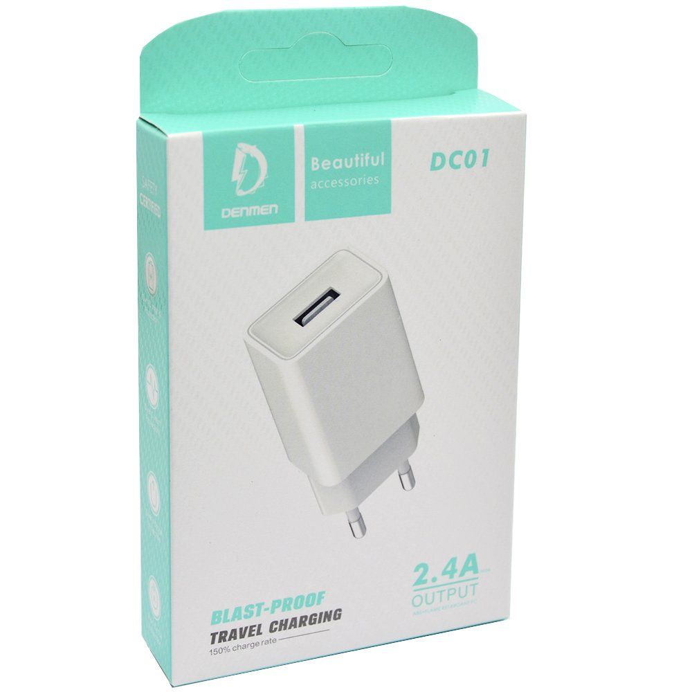 СЗУ USB 2,4А DENMEN DC01 (1USB) белый, черный