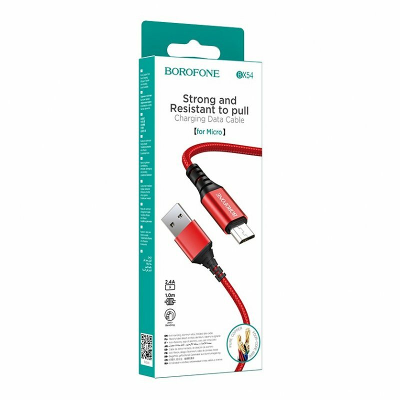USB-кабель BOROFONE BX54 AM-microBM 1 метр, 2.4A, нейлон, красный,черный (360)