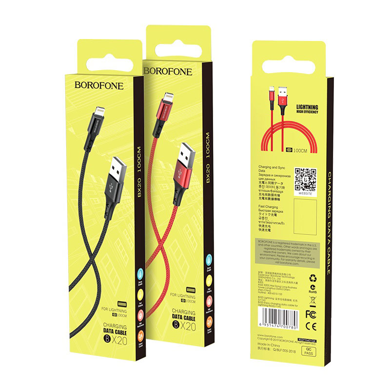 USB кабель Lighning Borofone BX20 черный 1м
