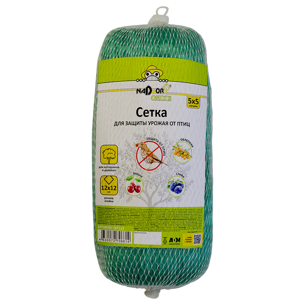 Сетка для защиты урожая от птиц (12*12мм), 5*5м. Nadzor Garden