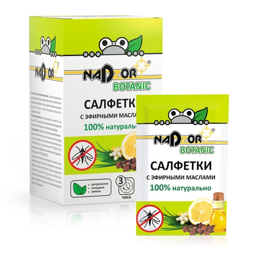 Nadzor Салфетки влажные с эфирным маслом от комаров 10 шт Nature Botanic