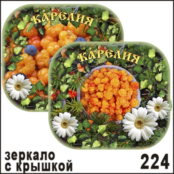 Зеркало Карелия двойное 7,5*8,5 Морошка и Ромашка