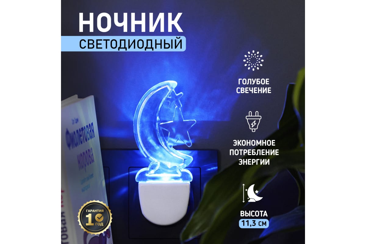Ночник светодиодный REXANT ЛУННАЯ НОЧЬ голубое свечение, 230