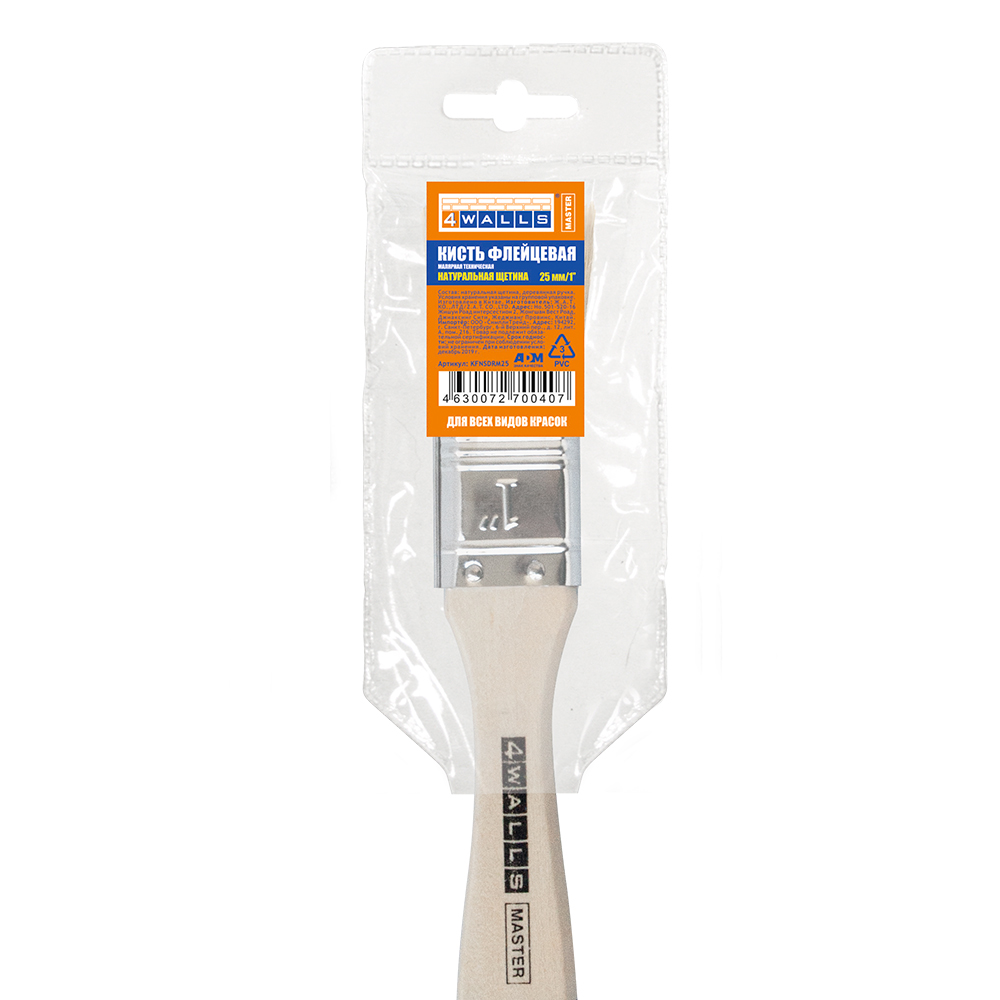 Кисть флейцевая, 25мм, нутуральная щетина, деревянная ручка, 4Walls Master